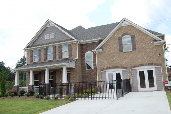 The Chadwick – 5 Bedroom/4 Bath – Elegant home nestled on a corner lot across from the amenities features 3 sided brick, beautifully landscaped yard with oversized patio with gas line installed and ready for grill. If you love hardwood floors, you will love coming home to 5″ Hardwoods plus a hardwood stairs. Entertain grandly in your Gourmet Kitchen Elite with under-cabinet lighting, pull out drawers, 42″ cabinets, granite countertops, pendant lights, stainless steel GE appliances with chimney style vent hood overlooking a cozy fireside family room with stone hearth and custom hand built-ins. Spacious guest room on main with bath featuring a granite vanity, tile floor and decorative tile surround. Upstairs, retreat to your spacious Owner’s Suite with separate sitting room, relaxing spa-like bath with “his & hers” granite vanities, relaxing jetted tub, walk -in tiled shower with massagers and jets, two walk-in closets or use one as an exercise room, complete with treadmill. Three more oversized secondary bedrooms, one with private bath and the others share a “Jack & Jill”. 1310 Sunny’s Halo, Suwanee, GA 30024 $497,995