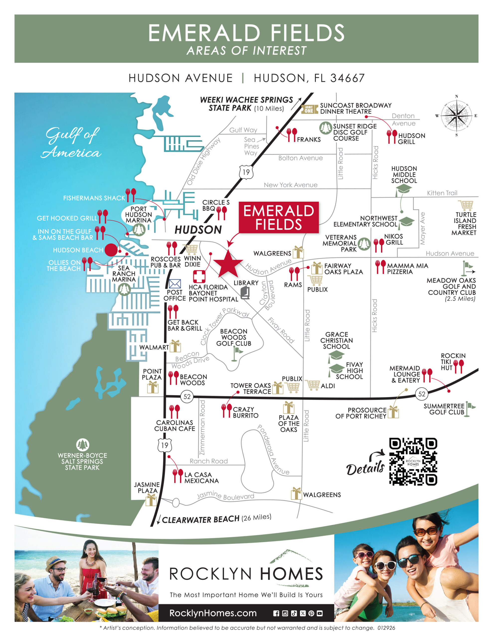 Emerald Fields offers a fantastic location with easy access to the best of Hudson, FL, and the Gulf Coast. Just a short drive away, you’ll find Hudson Beach, Sunwest Park, and Weeki Wachee Springs State Park, perfect for enjoying the outdoors. Shopping and dining are convenient with Publix, Walmart, and local favorites like Beacon Woods Golf Club and Mamma Mia Pizzeria nearby. For those seeking more adventure, Clearwater Beach is only 26 miles away, offering sand, surf, and sun just a short trip from home.