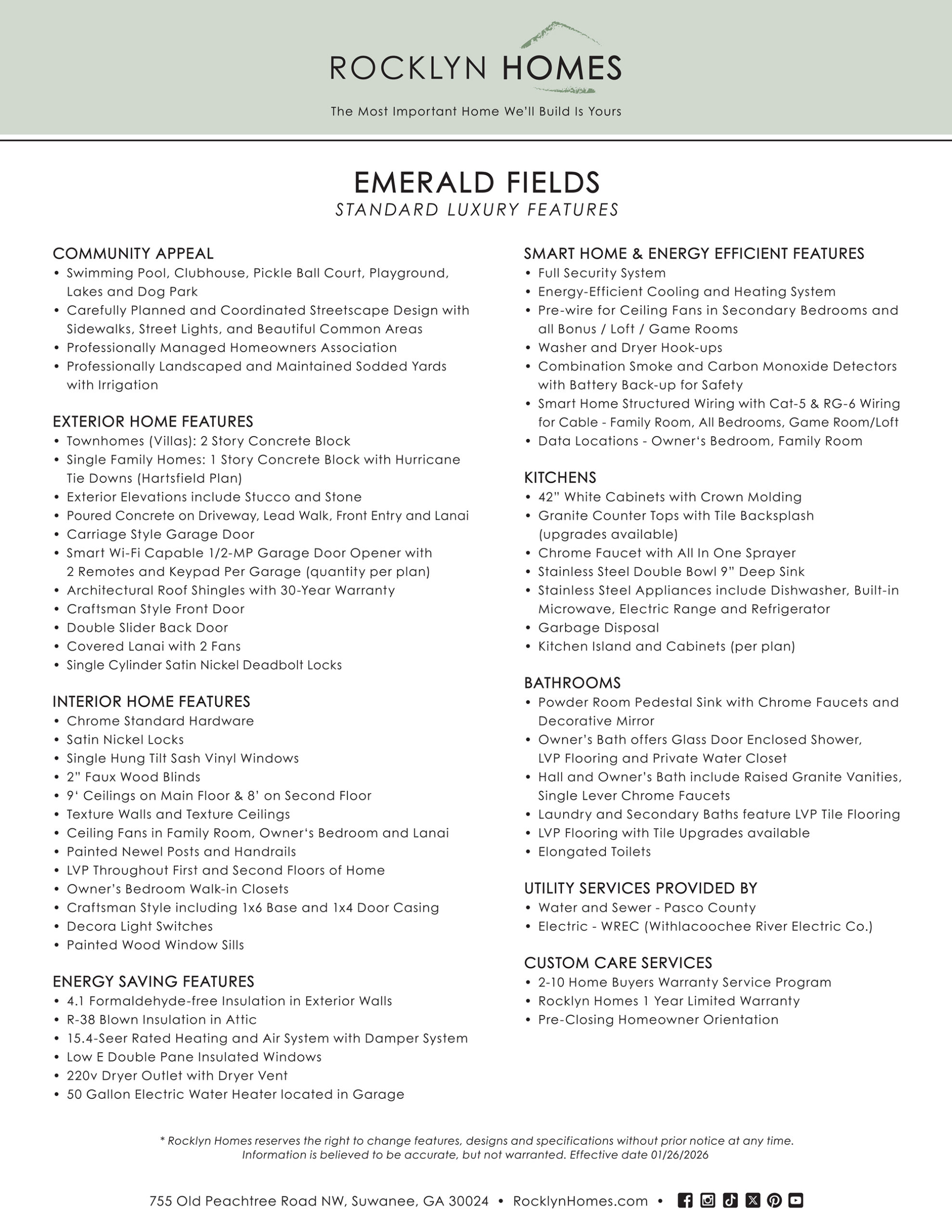 Emerald Fields homes are designed with both style and function in mind, offering modern conveniences, quality craftsmanship, and energy-efficient features for a comfortable living experience.