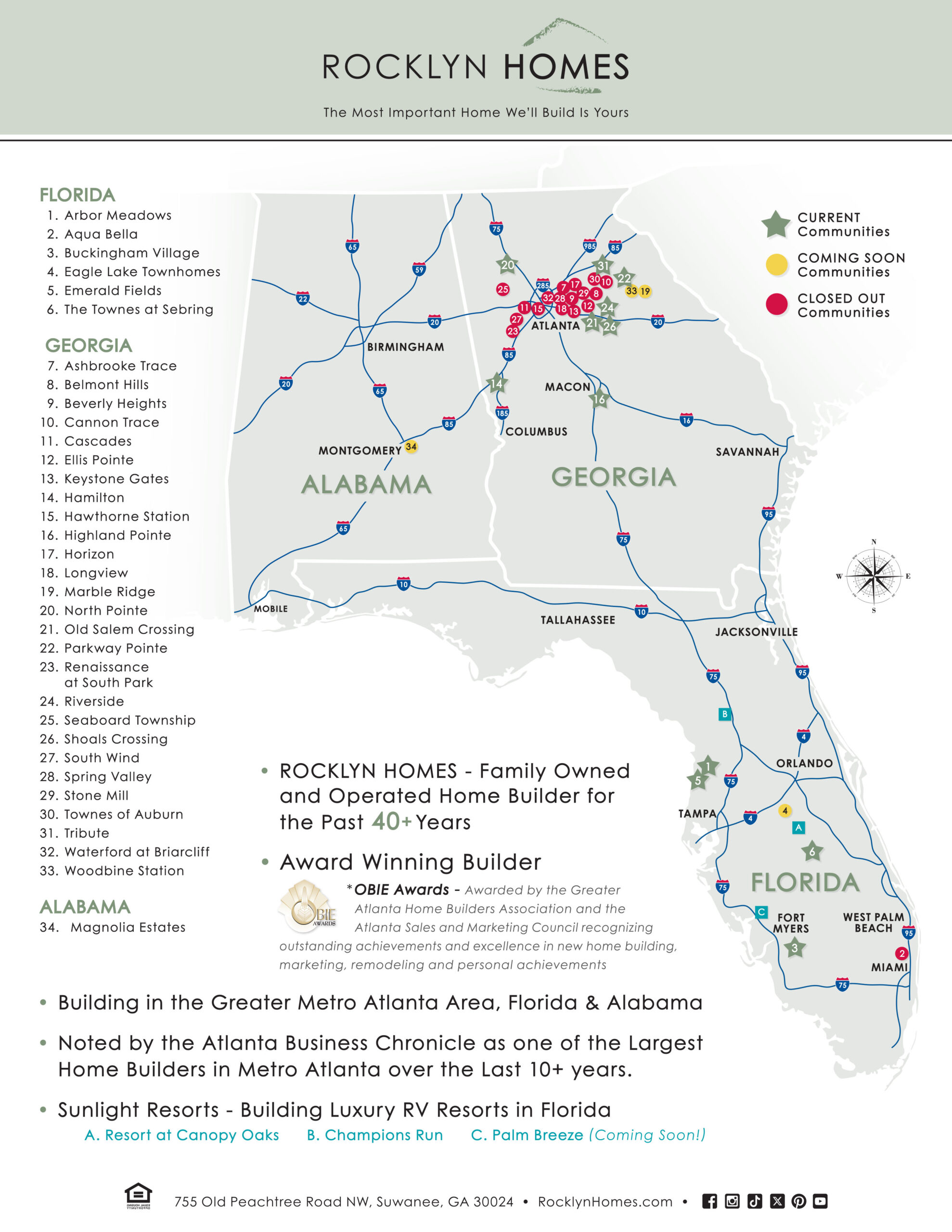 • Concrete block construction for townhomes (villas) and single-family homes (with hurricane tie-downs on the Hartsfield plan)